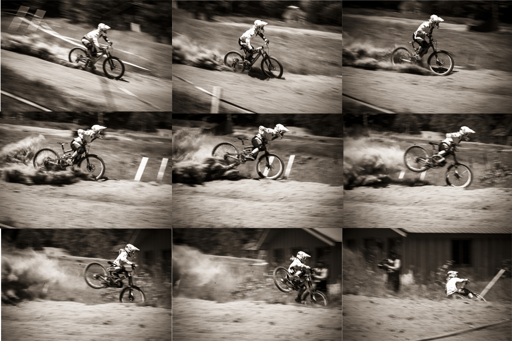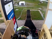 Tracey Hannah going off course after sending the big double before. No damage done though and fastest in timed training.