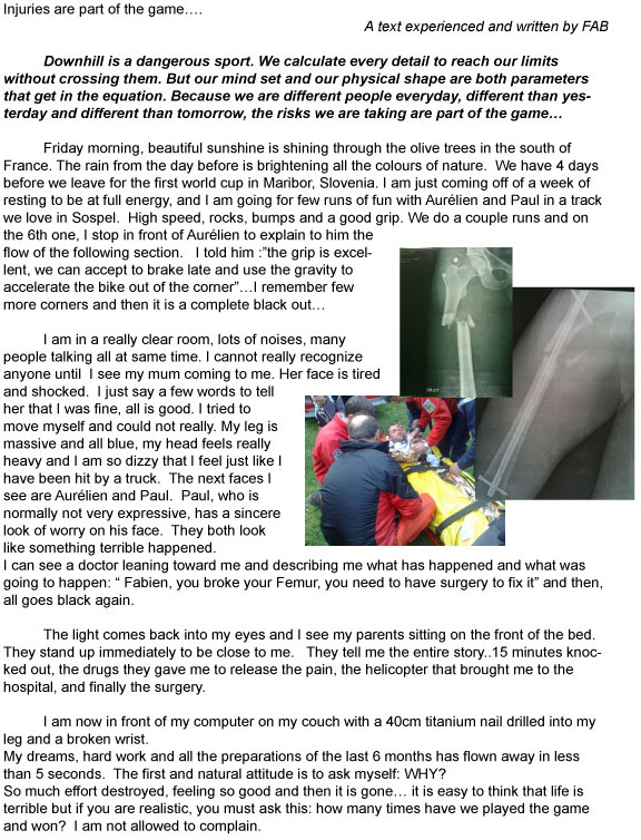 Following an accident in training at last weekend’s first round of the Gravity East DH Series at Massanutten (USA), Neko Mulally has a confirmed compound fracture of his arm, 3/4 down the Radius bone toward the wrist.