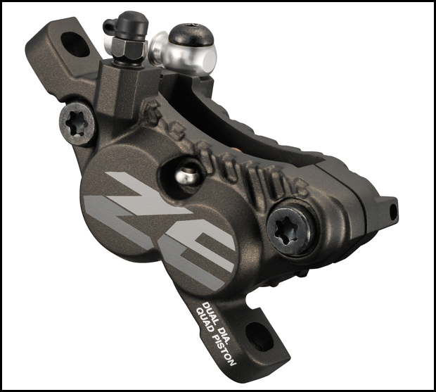 At the other end of the brake you will find a calliper that is hard to differentiate from the Saint one. Ok so you don’t get IceTech pads as standard but the brake is compatible with both the IceTech pads and rotors so you could always upgrade in the future if you wanted to. You do however still get four dual diameter ceramic pistons and one-way bleeding.