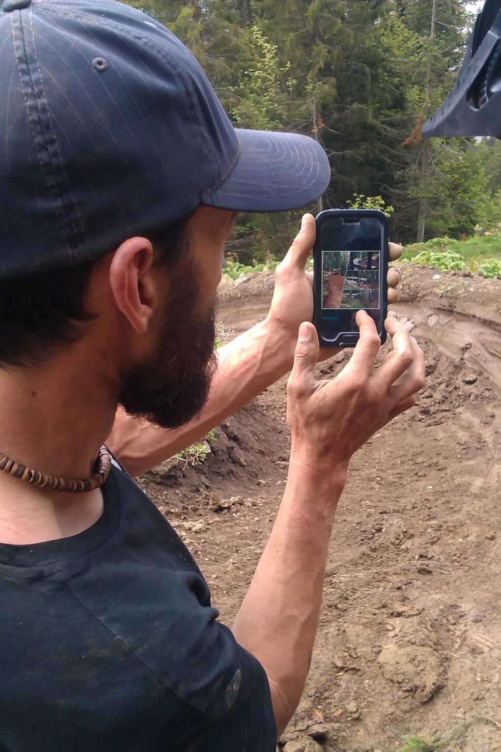 Above is Stefan, one of the trail builders, telling and showing McKnight just how bonkers they’ve made everything on the track. The track is called ‘Gets Airline’ and is 800m long with a 125m drop. Not massive, but judging by the behind the scenes video below it’s going to be packed full of radness from top to bottom.