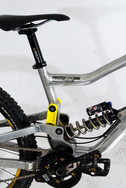 There was me thinking Transition Bikes would win the best looking bike pageant for 2010 with the TR450, when along comes this svelt beauty. Still at the prototype phase, she weighs in at a highly respectable 37lb 11 oz with pedals. More to the point, the Nuke Proof facebook page says, “it’s not a super light build and there are several areas in the frame where we can save some weight”. Check that out here.