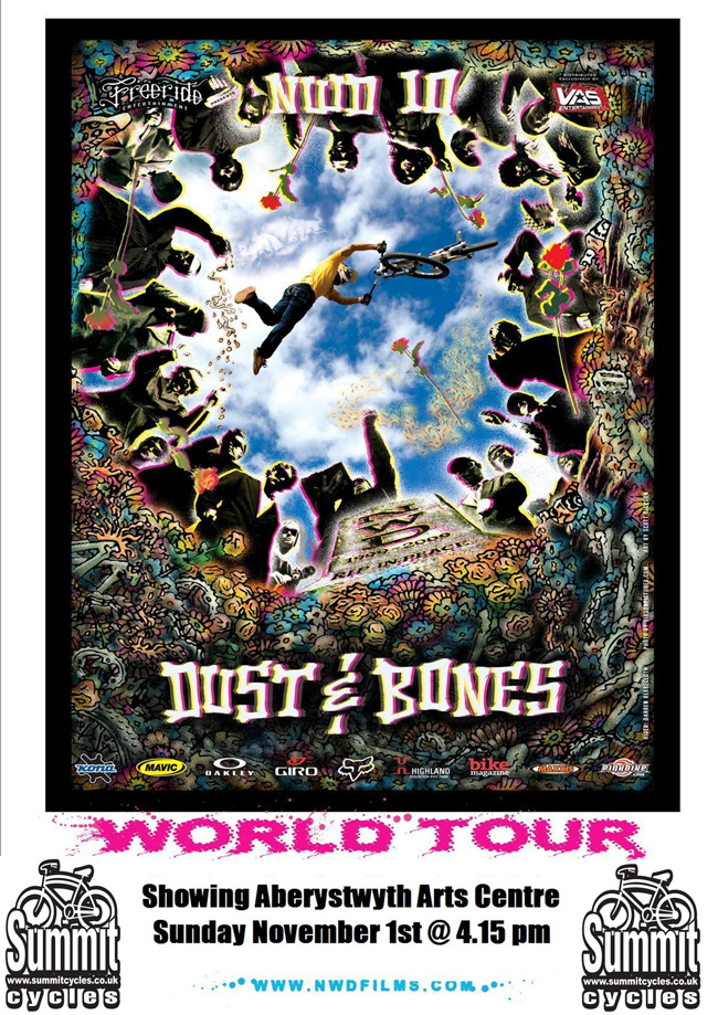If any of you are trick or treating around the Mid Wales area this weekend then Summit Cycles are showing the Welsh premier of New World Disorder 10 at Aberystwyth Arts Centre cinema this Sunday November 1st @ 4.15 pm.