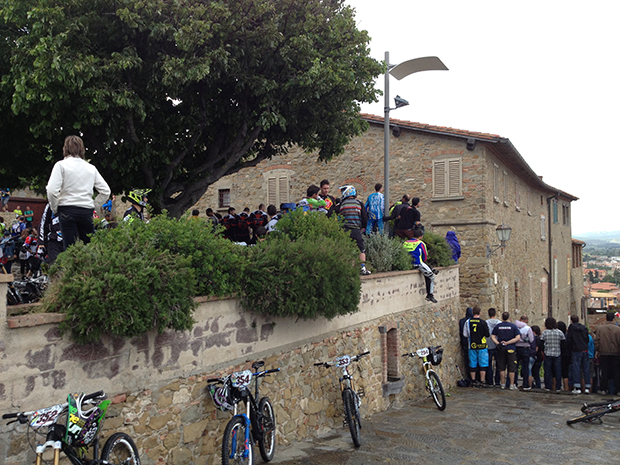 We got the show started early on Sunday morning and had a 90 minute transition to stage 1. Once there, Sam Flanners and I had a wander down into the start of Stage 1 to check it out where we saw Josh Bryceland have the funniest start to a race I’ve ever seen. After some swearing, putting his shoe back on and straightening his bars he was back on his way. Another high point of the day was Al Stock, the people’s champion, who rode most of stage 3 on his rim. Apparently he was the quickest out of anyone through the sketchy rock section and he managed to make 7 Italian spectators minds literally explode with how he came through the section with his tyre on his back.