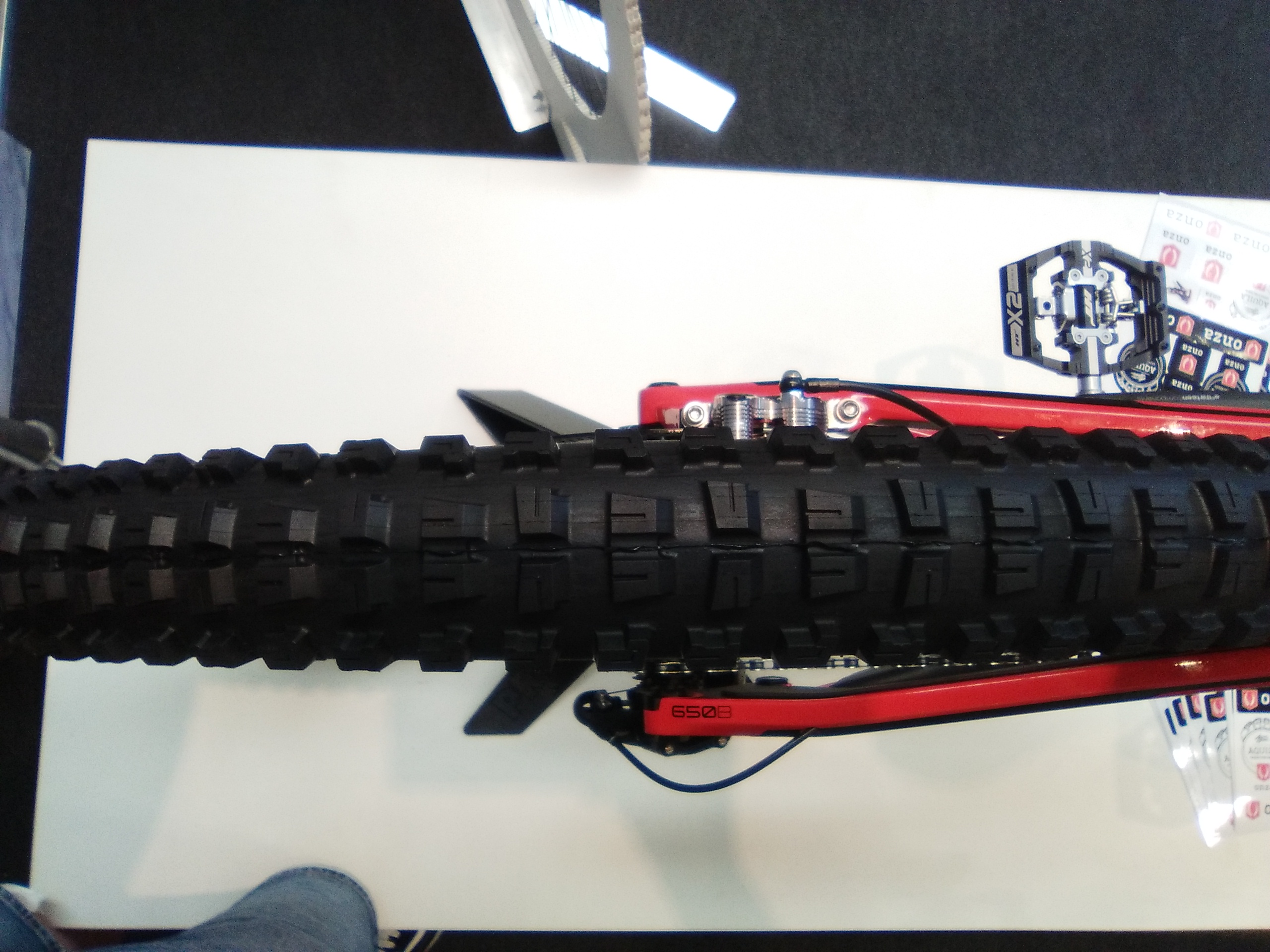 Today Onza unveiled its new prototype downhill tyre designed with input from the world’s fastest downhill racer and we picked up these spy shots from Eurobike.