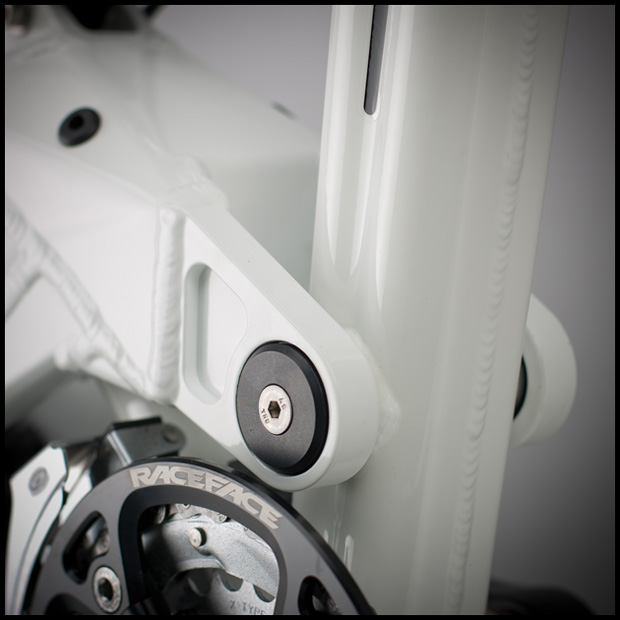Low pivot placement keeps the suspension super active but controlled and efficient. Small bump sensitivity with enough climbing poise to earn your turns. The same position as the Five, it rides light but takes the hits.