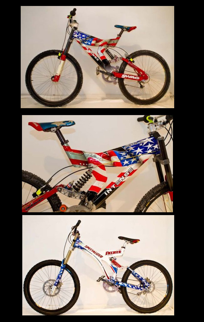 Up for auction is Shaun Palmers custom Troy Lee Designs painted 1999 DH mountain bike last raced in Are Sweden UCI World Championships. This is the real thing, this bike is a collectors item, all original. Custom Specialized FSR frame with Palmer Specs, Manitou Forks, Answer bars, Hayes brakes, Mavic Dmax Rims powder coated black, Shimano shifter and derailer, custom 160 race face cranks, MRP Palmer edition chain guide, Atomic Palmer pedals, Fox Shox, Pistol Pete OG grips, Built by the famous Joe Buck.