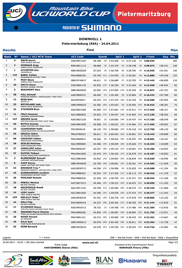Gwinny took the win last year by just 0.421 from local lad Greg Minnaar.