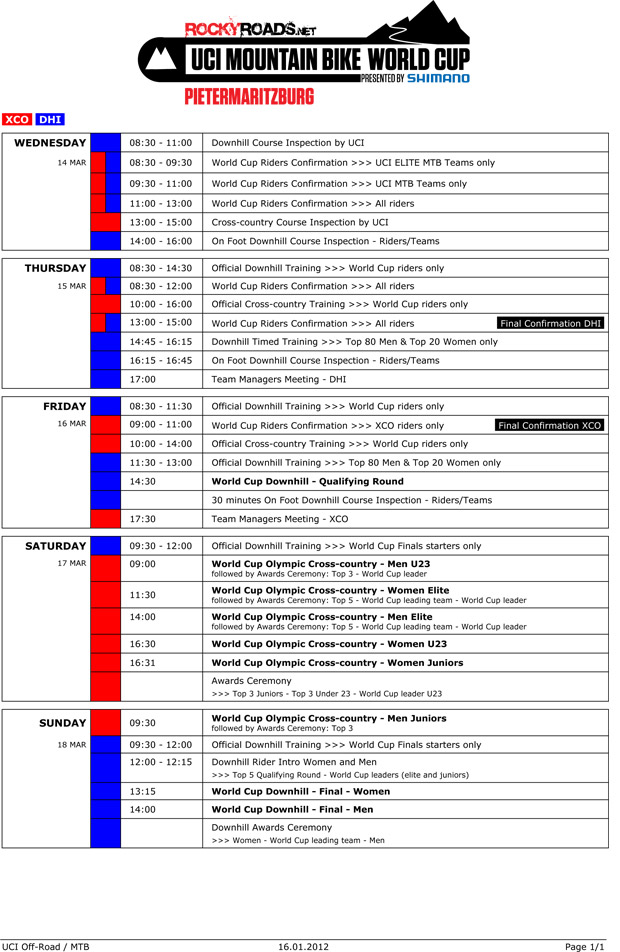 Whoop! The 2012 World Cup season has started! Pietermaritzburg is go go go! Track walk starts today!