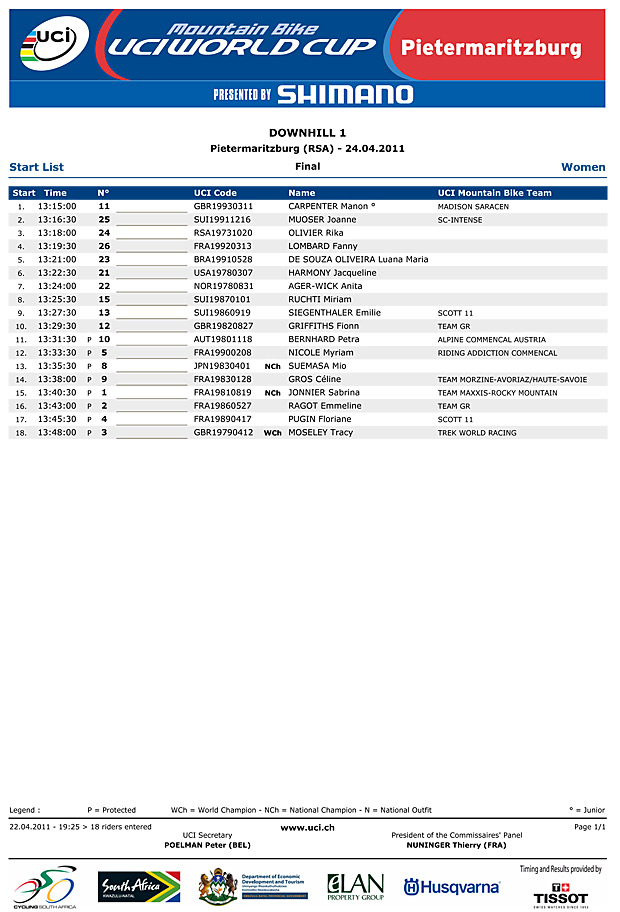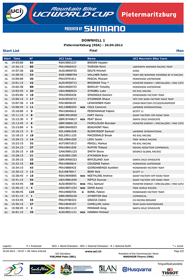 It’s on! It’s here! World Cup one finals blast off very soon. Check the full list of mens and womens Pietermaritzburg Downhill start times right here.