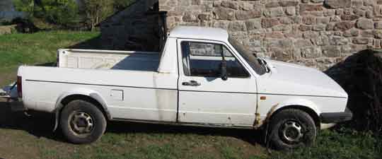 Okay here’s the score, a while back some old duffer rammed into my parked up van, sending it to the big scrap heap in the sky. Since then I met an old farmer, and swapped my cheese sandwich for his 1989 VW Caddy. It’s a lovely machine but as you can see she’s a boring, blank, white canvass crying out for a tin or two of neon Dulux Gloss or whatever they use these days.