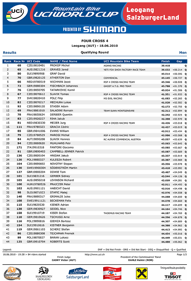 Michal Prokop put in a flying time of 39.418 edging out Jared Graves by 0.214 and David Graf (who?!) in third 0.596 off the pace.