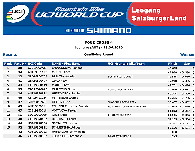 In the womens Romana Labourkova clocked a 45.605 ahead of Anita Molcik and Anneke Beerten with Katy Curd getting a great 4th spot.