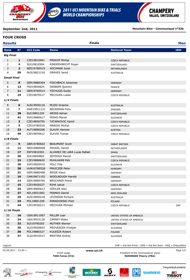 Joost Wichman got the snap out of the gate in the 4x finals only to come together with Roger Rinderknecht on the first corner also taking out Michal Prokop. Jared Graves looked like he was finally having some good luck, in possibly his last 4x race, and avoided the carnage but unbelievably picked up another rear flat (3rd flat of the year?) which left him dead last.