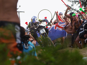 Stage one started in Sauze with a tarmac sprint followed by a series of fast, wide open turns. Stages two, four and seven were a short downhill-style track with seriously rough sections, steep turns and flat-out crests and dips. Stage five was titled the ‘Long Left Line’ and lived up to its namesake with the fastest time set by Jerome Clementz at 12 minutes and 12 seconds. Stage six was popular amongst riders and was the most flowing with a series of cresting, loamy right and left turns. Stages three, eight and the Super Mountain stage started up high and took in high speeds, perfect dusty turns and an interesting stream crossing that necessitated jumping off and running! Altogether I would say that the event encompassed mostly everything that makes up the sport of mountain biking, a fine blend and well done to the organisers.