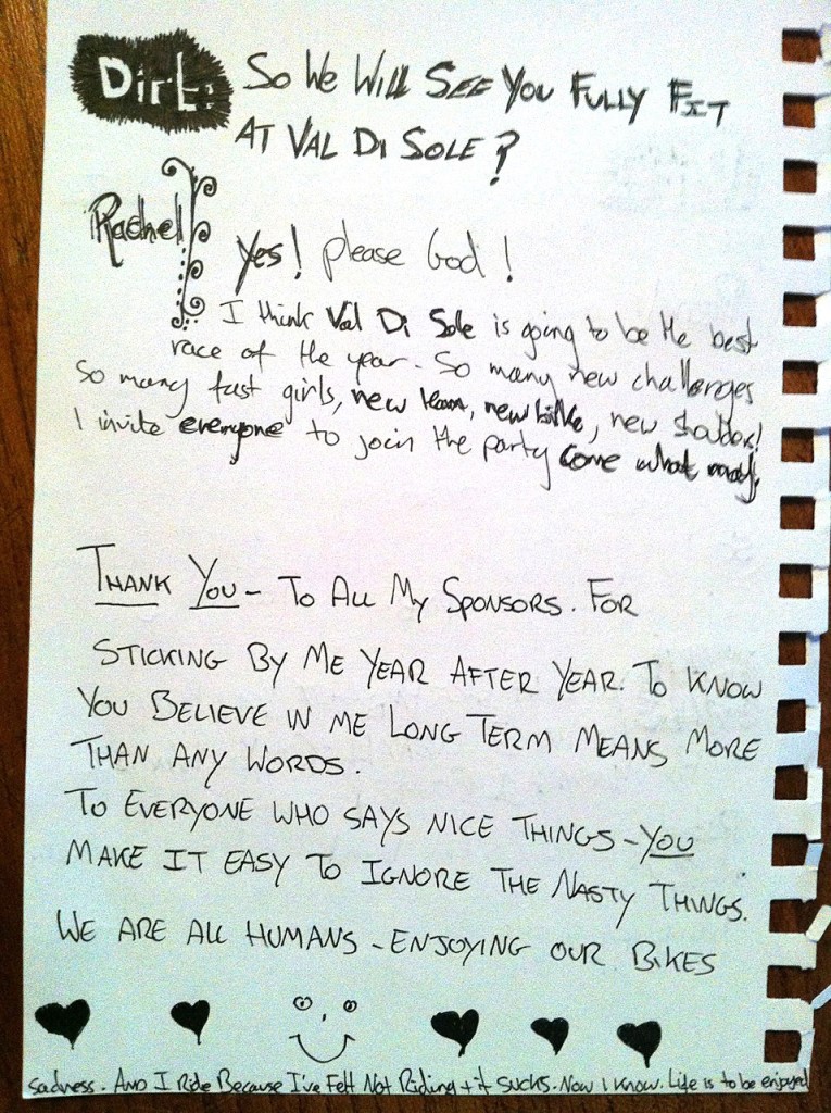 We wish Rachel all the best with her recovery and can’t wait to see her fully fit at round #2 Val di Sole, Italy.