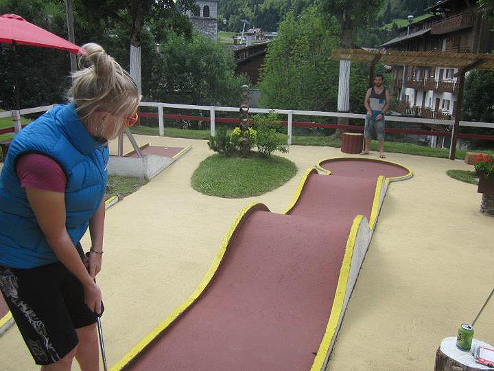 First stop was Morzine and Les Gets, the sun was shining and we were all excited to ride. We only stayed a couple of days in Morzine, the breaking bumps were not that much fun so we decide to go to La Cluz and ride there. We got a lift up the mountain and started following some crazy signs – it ended up being a epic 7 hour ride – I only had a small bottle of water (should of known better!) We ended up going some epic way and finding some amazing trails, I still loved it even if I was nearly passing out with dehydration …The next day we were all pretty tired so decided to have a rest in the morning and have a game of crazy golf.