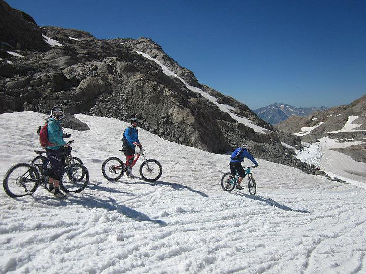 After the three hour drive we finally arrived in Allemont, we stayed at a lovely campsite right at the finish of the Mega track. For that week it was all about the Mega Avalanche race, out of all my friends I was the only one to have ever done it before. After a nice relaxing evening, we got up at 7.30am and went to the very top, to sample some of the snow. It was a funny morning, Sarah was sliding down on her ass out of control and Angela was making a slush puppy with her peak on her helmet in the snow going flat out down the mountain (you can imagine the laughs I got!)