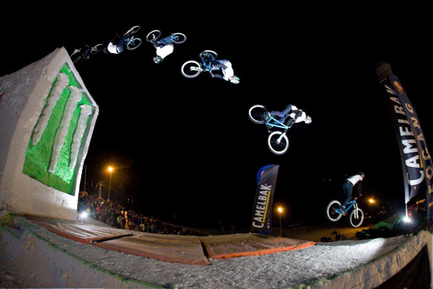 The riders had good reason to be wary of the Monster’s huge proportions. Only after Sam Reynolds broke the spell with a backflip off the feared mega-drop, one rider after another tricked off the obstacle. Sam completed his winning run with a backflip no hands, tailwhip, flip off the Monster drop and a superman seatgrab.