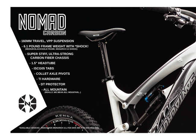 No, this isn’t an April Fool’s joke, and yes, this is the official release for the new carbon fiber Santa Cruz Nomad. Do not confuse it with any of the previous, most likely inaccurate, information that has leaked already. There’s a lot of ground to cover here, so we apologize in advance for the length of this email, but bear with us.