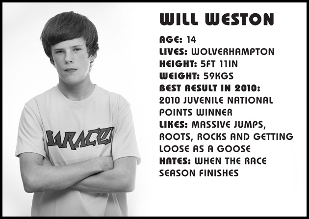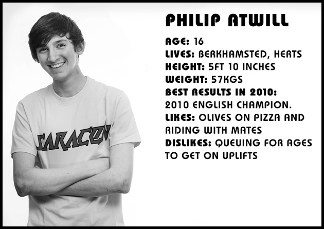 These two are joined by National Expert champ Jack Geoghegan, 20, from Hertfordshire, English champ Philip Atwill, 16, from Hampshire, PORC series winner Josh Lowe, 16, from Kent and 14-year-old Will Weston, from Wolverhampton, winner of the Juvenile category of the 2010 Halo British Downhill Series.