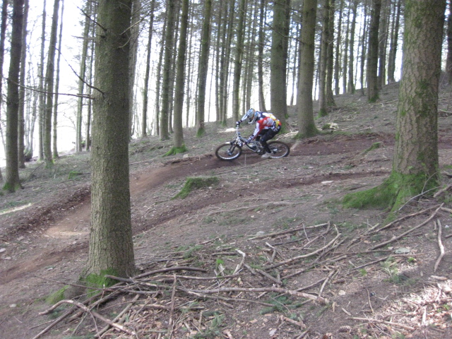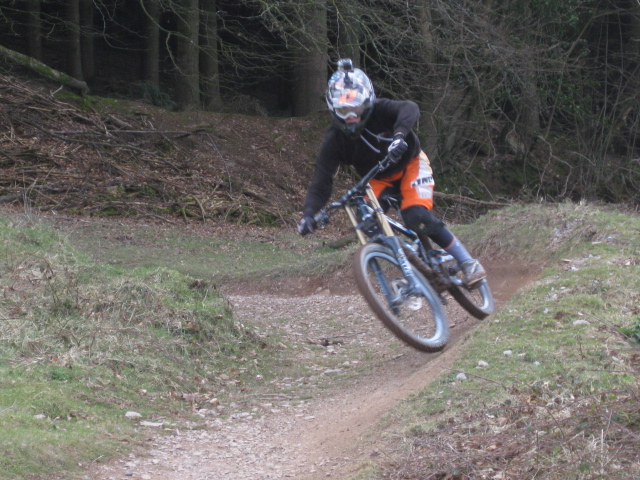 Jay again getting the pre-race practice in. Next is the gap jump exit berms.
