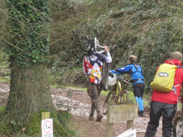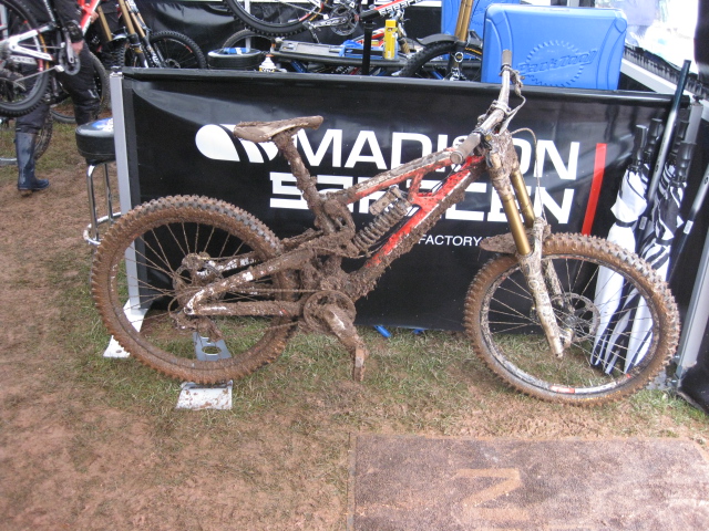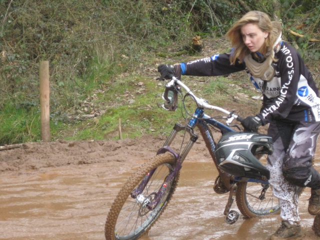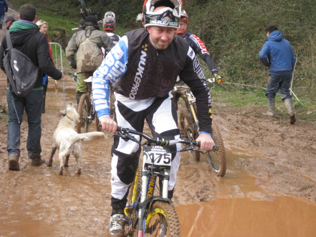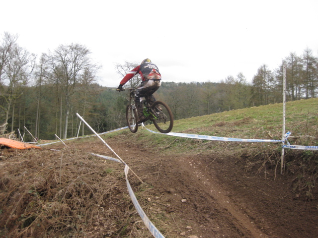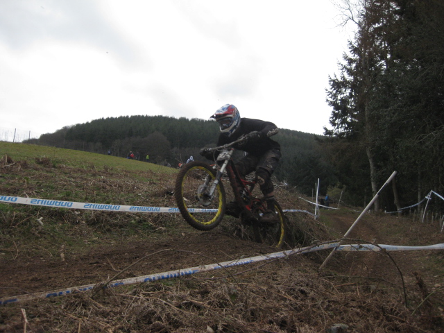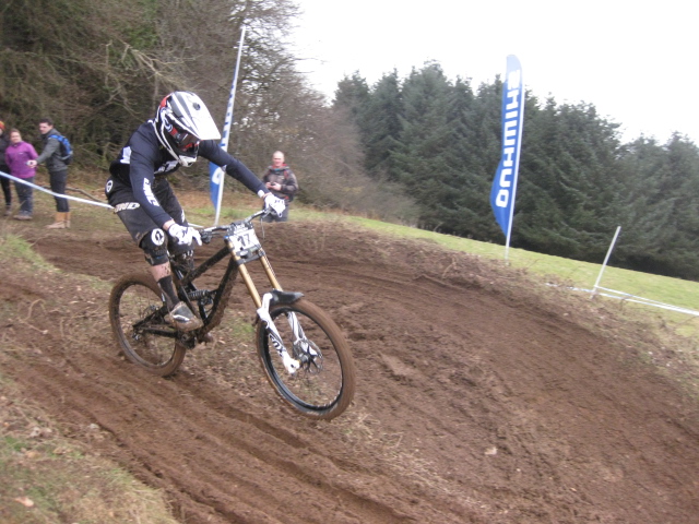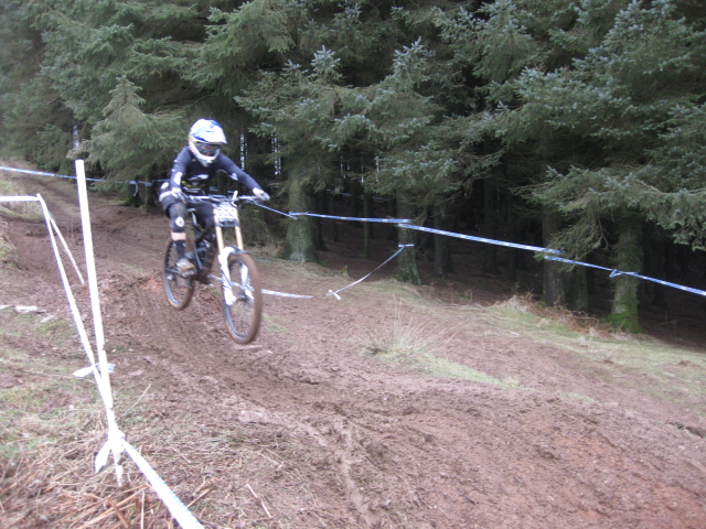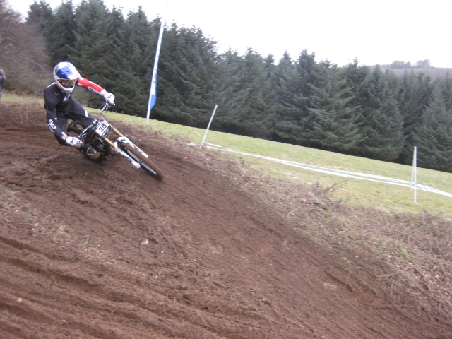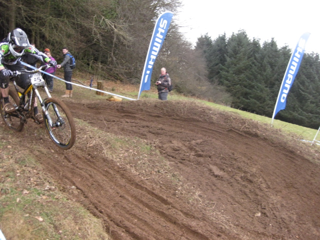 The track was a bit soup like to start with, but the rain held off and things started to dry out. The middle woods had suffered and mud was clogging bikes so much that most riders decided to skip the gap jump, many that tried it came up short, very short.