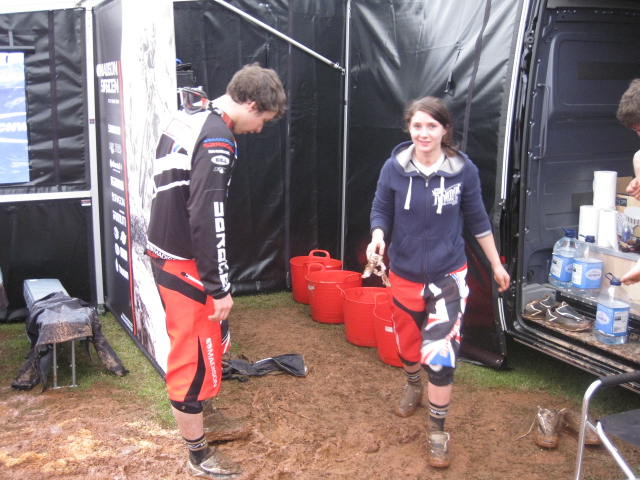 As I wandered off, bikes being cleaned, the pro pits had started to vanish, bumped into Manon, ready for the podium, only girl to attempt the gap jump, bit of a nose dive but rode it out, crowd loved it ! Manon knew too late it was coming up short but couldn’t take the sneaky 3rd line, cut off the kicker onto the wide line which a few blokes pulled off when they knew they wouldn’t make it but too late to stop, also the kicker is rounded / gouged out (ruined) so trying to hit the best part while holding your line in the mud, not easy.