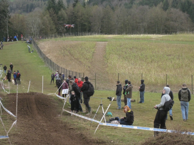 Someone had a helicam going, not sure on how legit that is, having a drone hovering above the track and spectators, curious to the footage it took though as it caught the last few Elite riders.