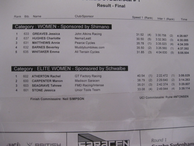 Watched the ladies seeding up top, Manon was well fast and lairy, lost the rear after the double into the tight trees, didn’t crash out but stalled, Rachel was a bit slower but smoother more composed, maybe tactics, play safe others might try to hard and thus lose time.