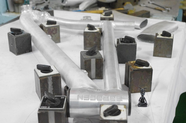 We dropped some exclusive snaps of the new Saracen Myst DH rig the other day (check them here), now we’ve got a load more spy shots fresh from the factory floor. In the previous post it became pretty clear that the majority of riders and industry folk are getting behind the new Saracen, and following a bounce around outside the dirt office, things are looking promising indeed.