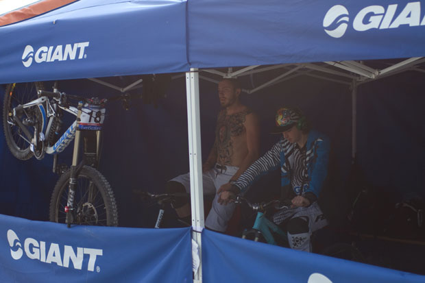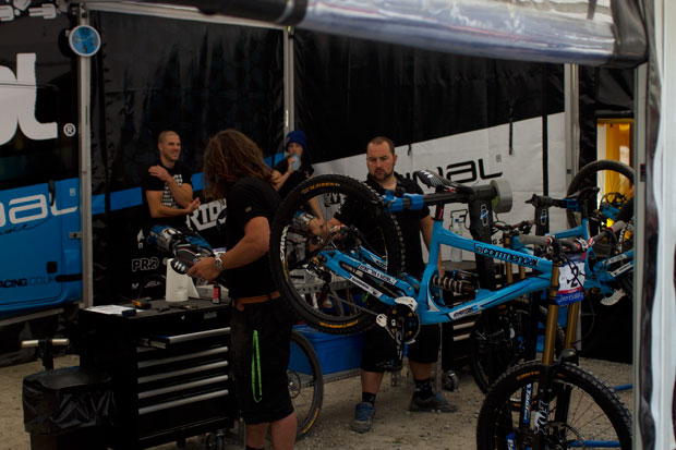 We bring you the latest Saturday morning paddock action. Pretty much everyone was on the turbo trainers, apart from one man, who was grafting…