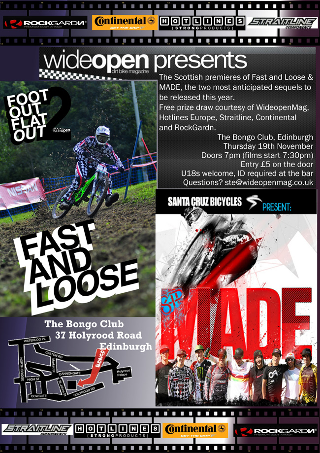 All attendees are automatically entered into a prize draw to win prizes from Wideopen Magazine, Hotlines Europe, Straitline Components, Rockgardn Premium Armour and Continental Tyres. The draw will take place in the interlude between the two films.