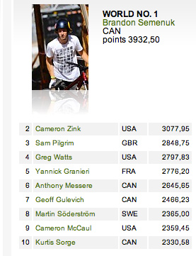It’s not only Gwinny that has won the series with an event in hand, Brandon Semenuk has claimed the 2011 FMB World Tour title.