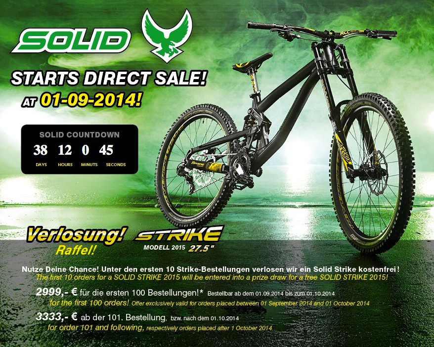 If you visit the Solid Bikes website all you’ll find is what’s in the screen-grab above. That one page is pretty significant in our eyes because it announces the first time that a well established bike brand has taken the leap from offering traditional bike shop sales and instead moved over to direct sales. Companies like Canyon and YT started out selling their bikes direct to customers, and in doing so substantially undercut the rest of the competition who were selling their bikes through bike shops, but we weren’t sure if any already established brands would ever switch business model in order to compete with Canyon and YT, simply because it’s a complex and somewhat brave move. Solid Bikes obviously feel it’s a move worth making though.