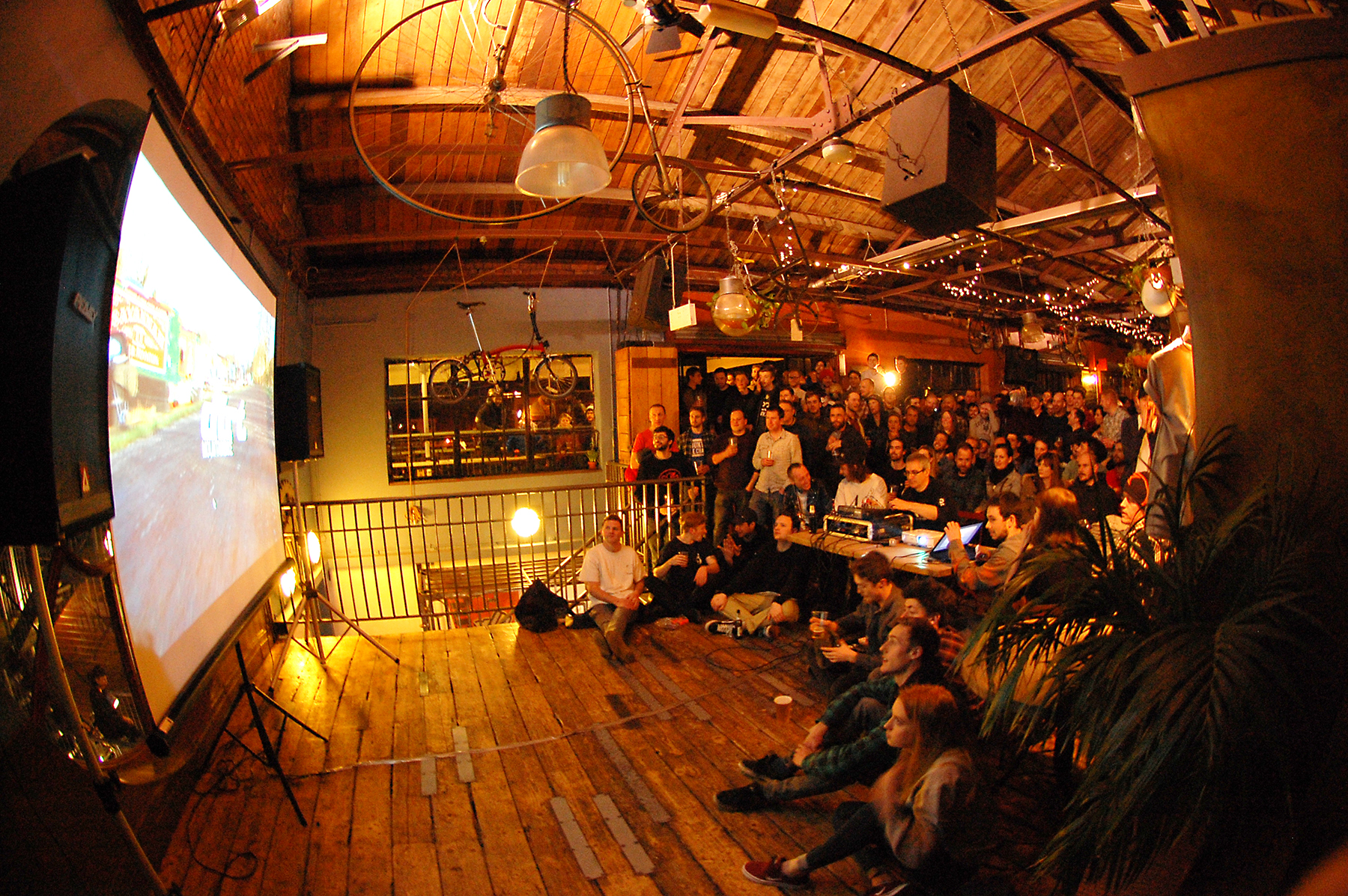 This isn’t a review, but the premiere of Dirt Magazine and Tom Caldwell’s ‘A Slice of British Pie’ (SBP) took place last night (Saturday March 12th) in Bristol’s awesome bike shop Mud Dock. A sell out crowd settled down to watch 30 minutes of ‘very British’ aggro DH style trail riding. This was spit and sawdust two wheeled action at its best.
