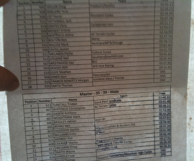Thanks to Dan Stanbridge (first race back from injury, good work Stanny) for the result updates.