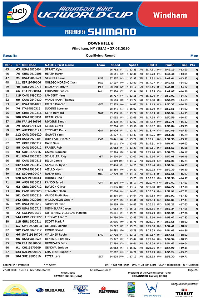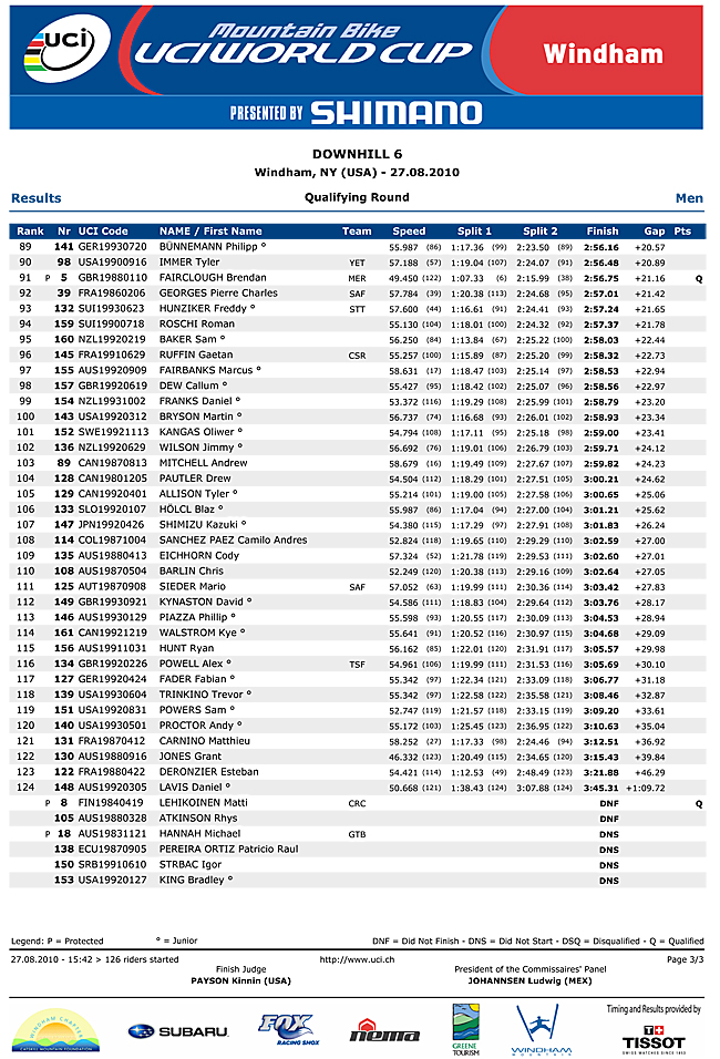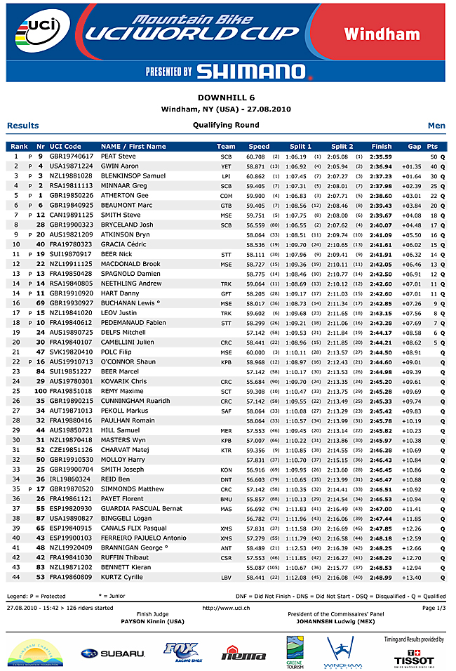 Bryceland 2nd at the first split! Junior Lew Buchanan 16th, Gracia right up there, Aaron Gwin poised for his first WC win? Sam Hill 29th, was he cruising? Brendan overcooked it before the second split but is protected, Lehikoinen is down as a dnf, and Mick Hannah DNS after a practise crash.