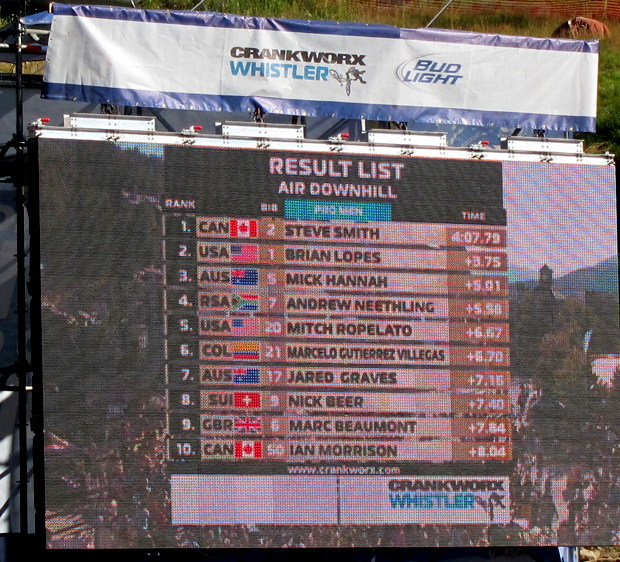 WHISTLER, BC August 15, 2012 – The Air DH took over the Whistler Mountain Bike Park with a sold out field of competitors ripping down the most famous DH course in the world, A-Line. Elite racers from all over the globe tested their skills to try to take home one of the most coveted medals of Crankworx.