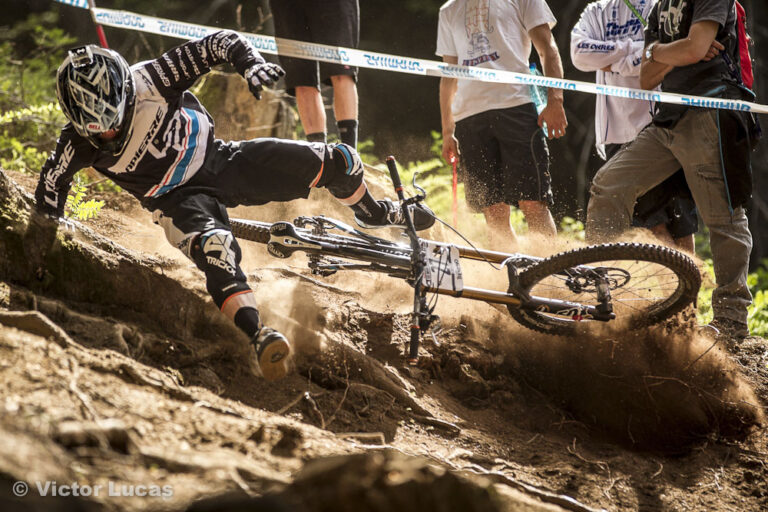 So onto the main event and the men’s final. Tomas Slavik had been unbeaten all day. He took gate one, Jakub Riha was on 2, Tatarkovic on 3 and Pesko was on the outside. As the gate dropped Slavik got the holeshot, but going over the first logs, Pesko got an amazing drive and went into the first turn bar to bar with Slavik. As Tomas had the inside he led it around turn 1 but an amazing pass from Riha put him into 2nd. Riha was a fair way behind Slavik but he started to make up ground. Heading towards the ‘S’ bends, Riha had got right onto Slavik’s wheel and looked like he was going to make the pass, but a small mistake threw him over the bars and he crashed out. From here Slavik cruised down to take the win ahead of Pesko, Tatarkovic and Riha.