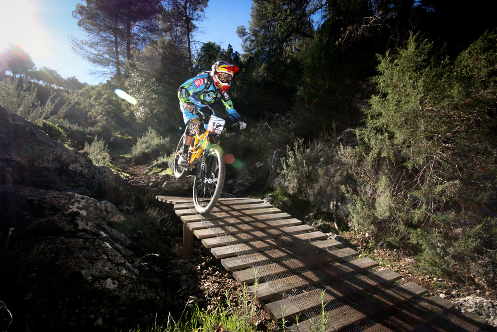 The final round took place just an hour north of Alicante at a privately owned bike park called La Fenasosa. It’s a location that has been used for many bike tests and is open every weekend to the public to ride the DH, freeride trails and jump park, all serviced by uplifts in old army vehicles and accommodation and food is provided by the owner Jean-Philippe at the castle on the grounds of the estate!