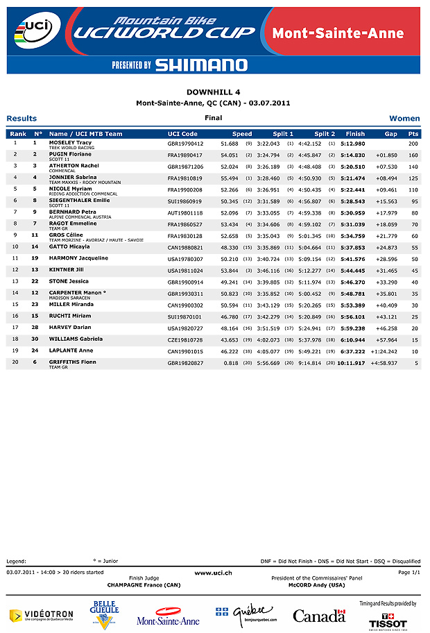 Tracy Moseley won an amazing victory on the tough physical Mont Sainte Anne World Cup track here in Quebec.