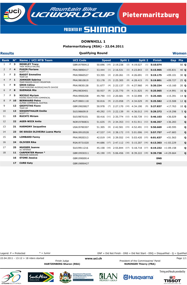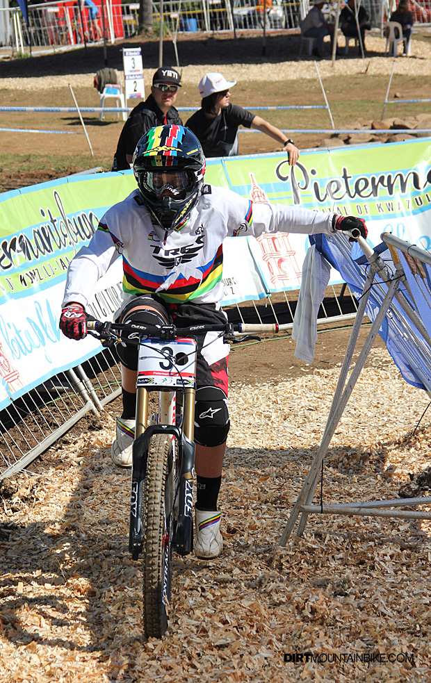 News just in, Tracy Moseley has just won qualifying out at the first round of the World Cup in Pietermaritzburg in South Africa.