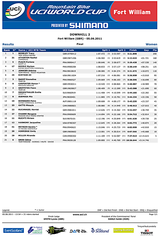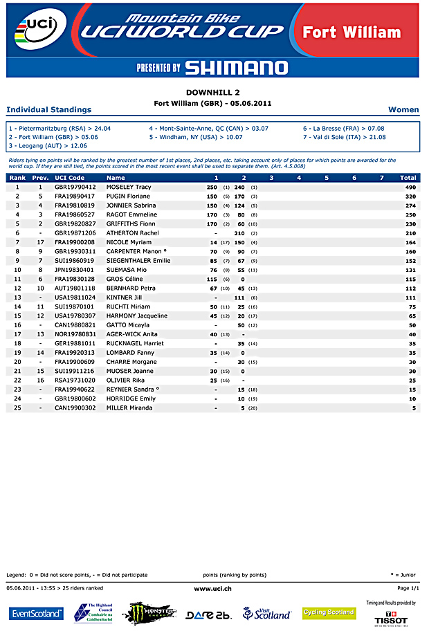 Truly unbelievable scenes here as Tracy Moseley wins her fifth downhill race in Fort William and her second World Cup of the year. It was looking at one point that it might be a French whitewash, but Moseley and Atherton kept it together to raise the roof here in Scotland.