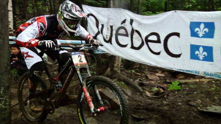 Under light cloud the sun came out just at the right moment. Earlier on Celine Gros had a front puncture and was out, Emmeline Ragot lost her chain, then Jonnier came down 6.6 second up, but knowing that she had not gone fast enough. Kintner came down 4.9secs off Jonnier’s time, saying that she had unclipped in the woods. Manon Carpenter was on a good run but crashed in the woods (8th), then Myriam Nicole bumped Jonnier off the hotseat, then Pugin did the same to her…a French one, two, three.