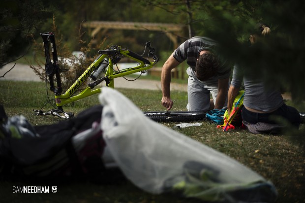 Will Ockleton from Santa Cruz working on some final bike prep.