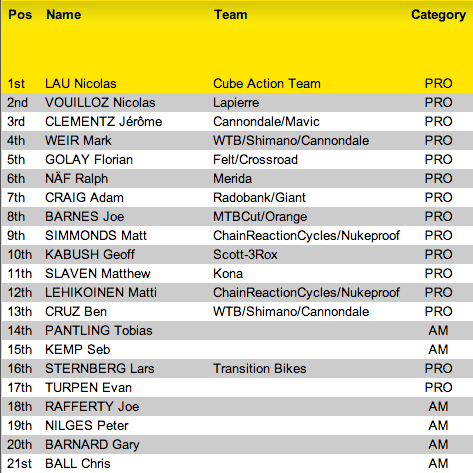 Looking at last year’s top 20 riders there are some of big names in this year’d Enduro World Series in there. Nico Lau took the win his namesake and fellow Frenchman Nico Vouilloz in 2nd with EWS series leader Jerome Clementz in 3rd.