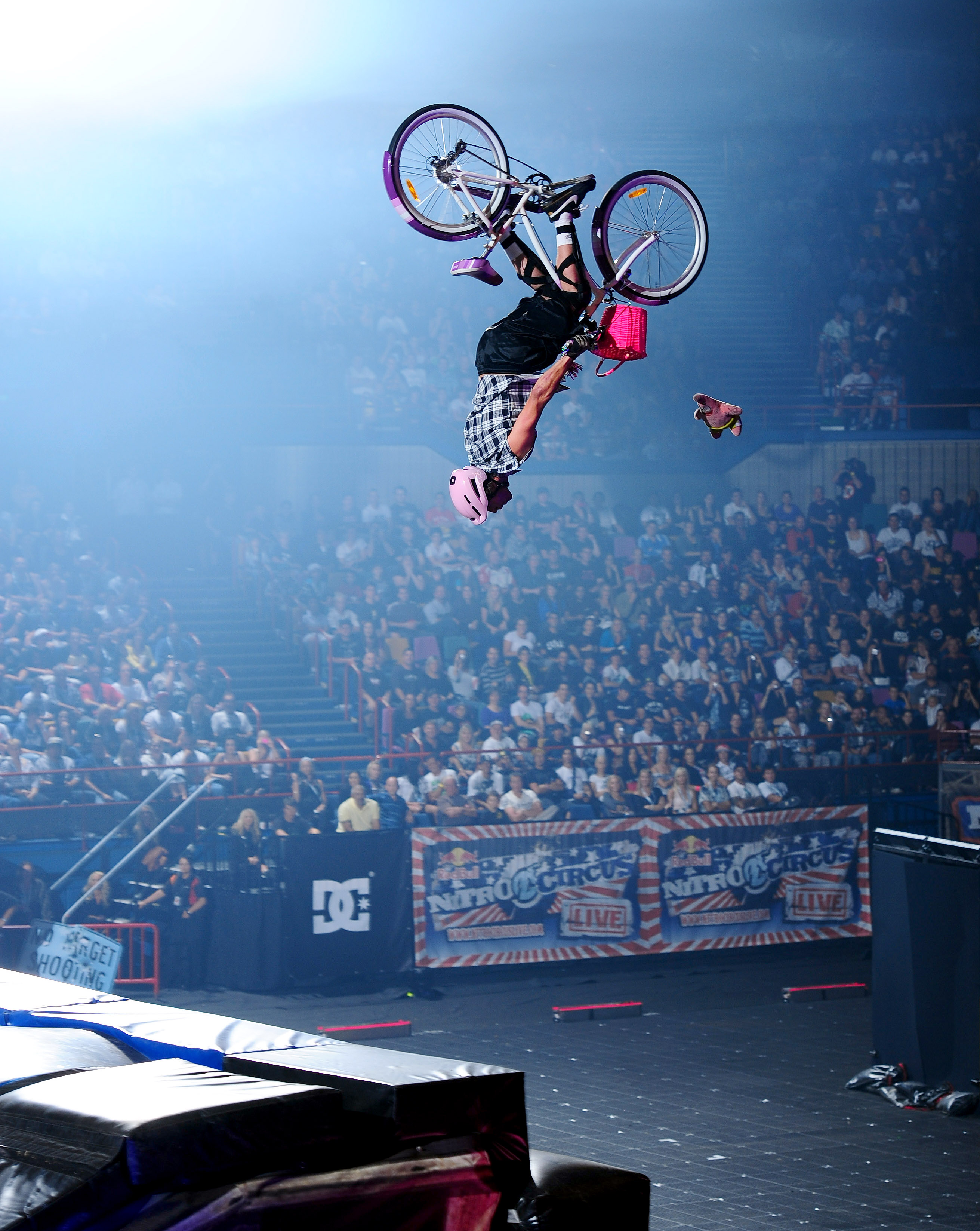 Fans can expect to see everything from kids’ trikes, snow skis, tandem bikes and razor scooters through to shopping trolleys, a Barbie car and even a drinks cooler launched with skill off the Gigant-A-Ramp. The show also features spectacular choreographed FMX riding, including the 10 rider Nitro backflip combination train, which has to be seen to be believed.