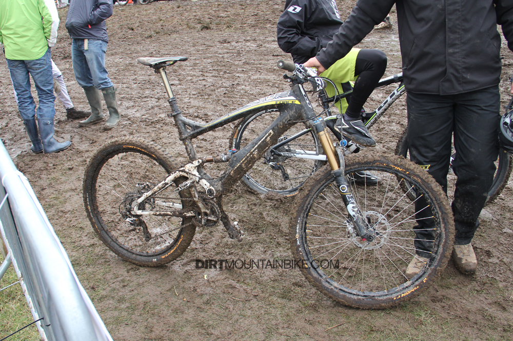 Having raced there 2 years ago the route map looked like some of the same sections would be used, there was a long transition out to stage 1 but the other 4 stages were all quite close together, although there was still plenty of pedalling inbetween to be done, around 20 miles in total and 3hours to complete. The full loop ridden on Saturday and then it’s up to stage 5 for seeding time. A number of the elite riders opted for the bigger wheels this year, well this round anyway, with Dan Atherton running what looked to be a prototype 650b wheeled GT bike, would the bigger wheel size dominate the results sheet?
