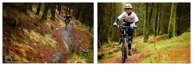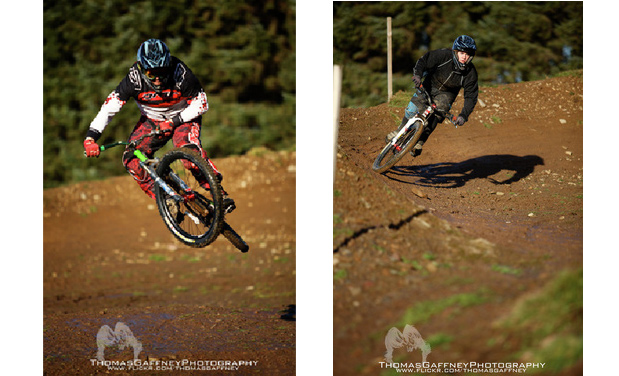 Left: John shredding the xc line – Energy. Right: Kieran making his way up Dastadly and Muttley