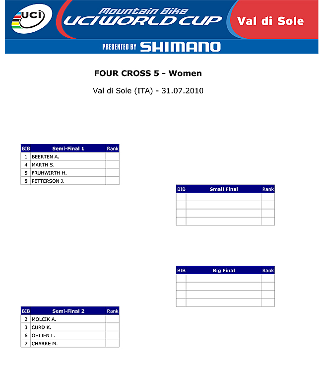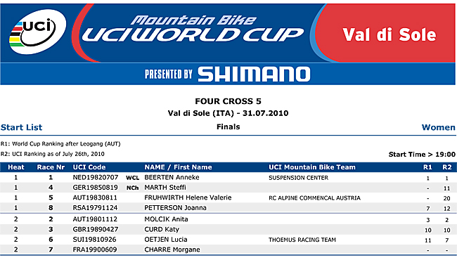 Anneke Beerten and Roger Rinderknecht go fastest in Val di Sole World Cup qualifying. Scott Beaumont had a bonza result with a 9th after being out...